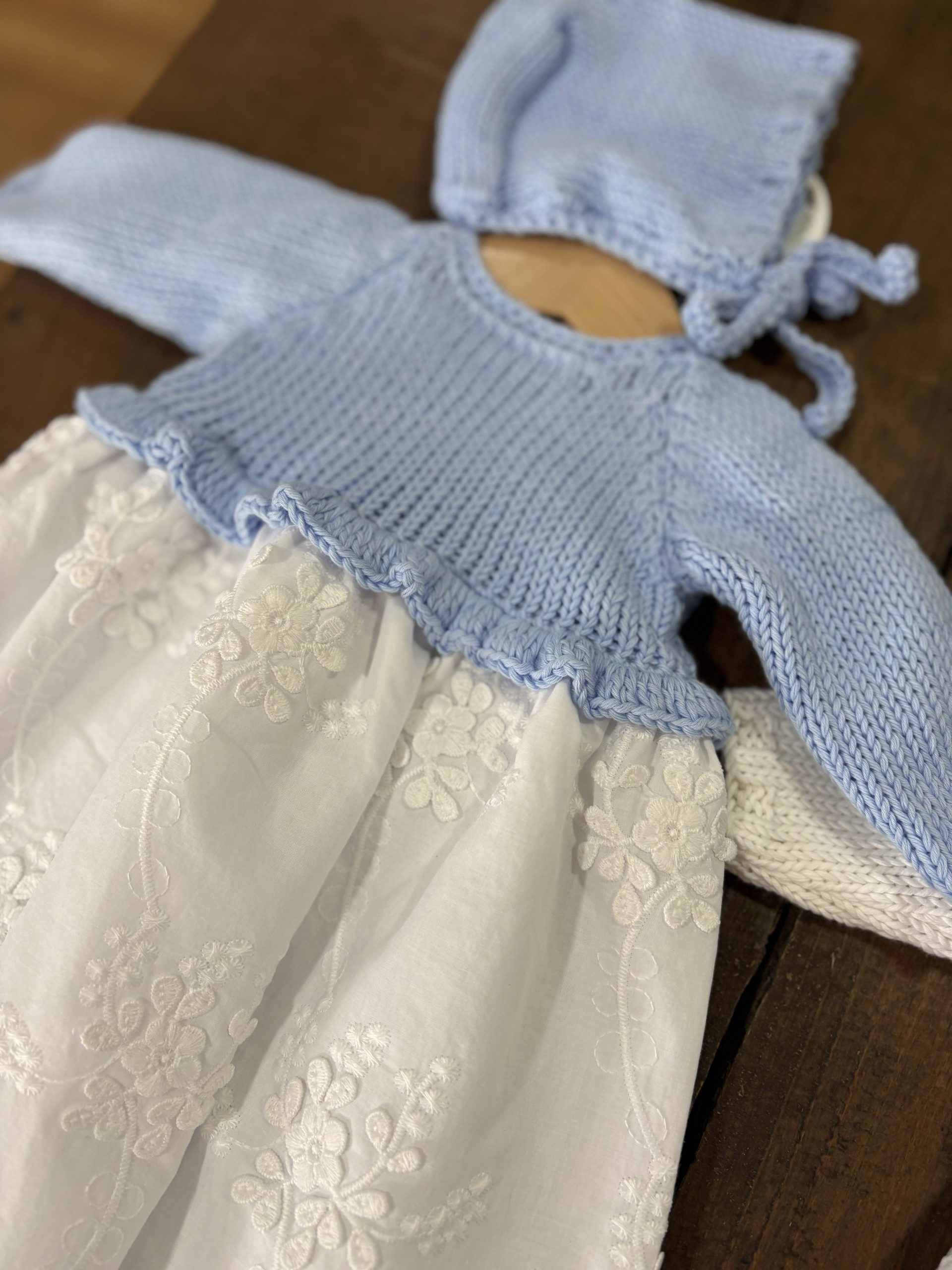 Faldón confeccionado con un tejido de flores bordadas en algodón 100%. Está forrado