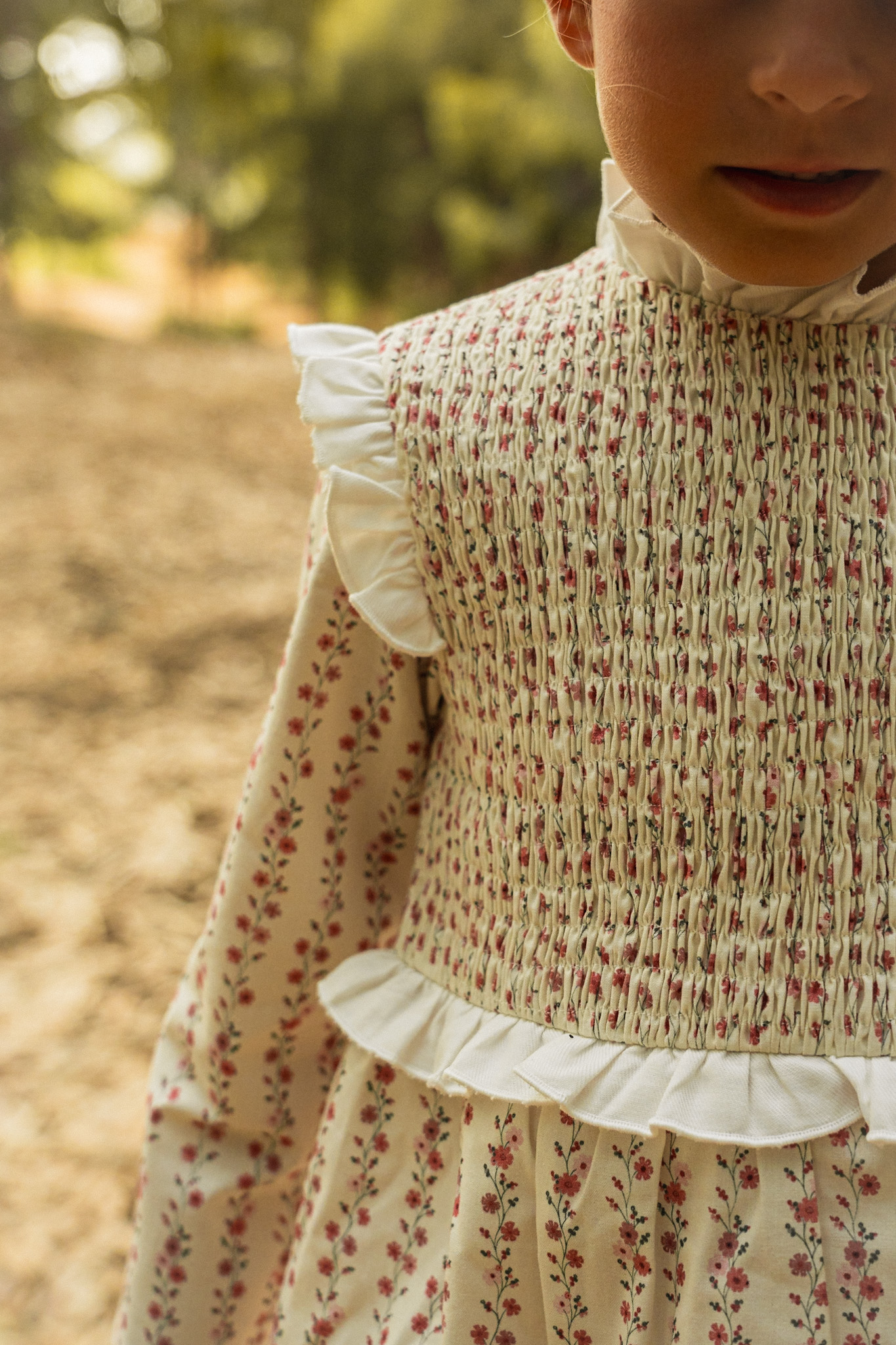 Vestido Teresa con tejido diseñado exclusivamente para Calatea Kids y forrado en algodón 100%